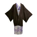 長羽織 はおり コート 洗える 黒地桜楓野菊松葉 フリー 羽織紐付 ロング丈 単品 和装 着物 女性用 黒色