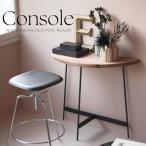 コンソールテーブル 半円 壁付け 木製天板 無垢 アイアンレッグ サイドテーブル 花台 ディスプレイ 天然木 古材 インテリア モダン おしゃれ スリム 玄関 飾り棚