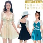 水着 レディース ワンピース オールインワン 体型カバー おしゃれ かわいい M L XL 露出控えめ フリル 20代 30代 40代 ママ水着 海