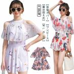 40代 水着 20代 オフショルダー フレア レディース 2点セット ショートパンツ 花柄 ワンピース ママ水着 露出控えめ ワンピース水着 30代