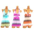 レディース水着 モザイクボーダー柄 ホルターネックワンピース水着3カラー