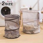ランドリーバスケット 洗濯カゴ ランドリー収納 折りたたみ メッシュ 巾着 円筒形 自立 収納ボックス 収納袋 省スペース 持ち運び便利 コンパクト 衣類 雑貨収納