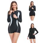 フィットネス水着 レディース オールインワン 競泳水着 温泉 スイムウェア フィットネス 水着 女性 長袖 体型カバー 練習用 短パン ファスナー