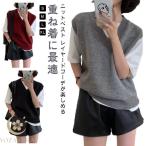 レディース ニット ベスト vネック おしゃれ セーター トップス 前開き ショート丈 ゆったり 秋冬 重ね着 きれいめ 通勤 体型カバー カジュアル オフィス 防寒