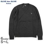 スクールセーター 女子 コットン 制服 ニット Vネック S〜L OLIVE des OLIVE 学生 女子高生 レディース 防寒 綿 ワンポイント (送料無料) (在庫限り)