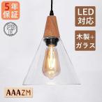AAAZM ペンダントライト ガラス 木製 北欧 おしゃれ 筒形 LED電球 木目 円錐形 明るい 和風 天井照明器具 寝室 リビング ダイニング 食卓用 直付け 吊下げランプ