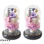 お供え プリザーブドフラワー 仏花 お悔やみ お供え花 生花 ローズ カラスドーム アレンジメント お盆 ペット お仏壇用 初盆 お彼岸 一対 (2個セット) (白+紫+桃