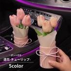 造花 チューリップ 3本 鉢花 ポット付き フェイクフラワー インテリア 車内装飾 飾り アートフラワー アーティフィシャルフラワー コンソールボック