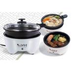 電気鍋 マルチポット 1台4役 煮る焼く蒸す炊くC&J(株)ガラス蓋付き 着脱式 600W 2段階火力 一人暮らし グリル鍋 ケトル調理 蒸し器 ホワイト