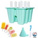 アイスキャンディー型 6個 簡単リリース 再利用可能なBPAフリーシリコンアイスポップ型メーカー シリコン漏斗 クリーニングブラシ付き