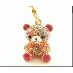 スワロスキーストラップ リラクマ コグマ 熊 ハッピーグッ スマートフォン、かばんなど 携帯アクセサリー(ゴールドマルチ)