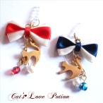 猫 スマホピアス ねこのボーダーちっくなりぼんとチェコとパールのイヤホンジャック ライトニング コネクタカバー Cat's Love Potion