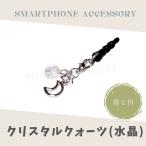 ストラップに変更OK クリスタルクォーツ(水晶)の月と星のイヤホンジャック ハンドメイド 手作り 透明 可愛い オシャレ ペア 誕生石 おそろい