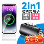 モバイルバッテリー 2in1 急速充電器 残量表示 小型 5000mAh 直挿し コネクター内蔵 2Way蓄電 収納式コネクタ 2.4A MFI認証 PSE認証済 iPhone/Android対応