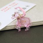 干支根付紐 午 ピンク 透明 ピンク紐 縁起物根付 ストラップ 2026干支 新年