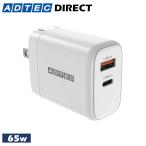 PD充電器 65W APD-V065AC-WH 2ポート【USB-C+USB-A】【PD3.0/GaN (窒化ガリウム) 】iPhone Android Xperia Switch ホワイト