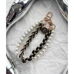 「 NOLITA / ノリータ 」レザー チェーン パールビーズ スマートフォン ストラップ パール × チェーン カメリア チャーム付き スマホスト