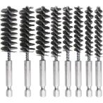 ワイヤーブラシ 六角軸6.35mm 8本セット ステンレス鋼ボアブラシ 直径8 9 10 11 13 15 17 19mm(シルバー)