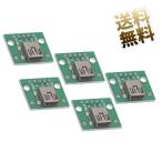 【5点セット】USB Type-C メスソケット 4Pアダプタ プリント基板付き B 2.54ピッチコネクタ接続ホール
