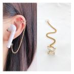 イヤーカフ AirPods 落下防止チェーン バタフライチャーム ラインストーン 両耳セット イヤーカフつき エアポッズアクセ 落下対策 韓国風 可愛い チェーン
