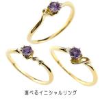 婚約指輪 安い ゴールド リング 選べるイニシャル アメジスト ダイヤモンド 指輪 イエローゴールドk10 ピンキーリング 華奢