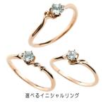 婚約指輪 安い ゴールド リング 選べるイニシャル アクアマリン ダイヤモンド 指輪 ピンクゴールドk10 ピンキーリング 華奢