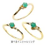 婚約指輪 安い ゴールド リング 選べるイニシャル エメラルド ダイヤモンド 指輪 イエローゴールドk10 ピンキーリング 華奢