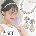 セール ウェディング ヘアアクセサリー ピアス ネックレス 3点セット 結婚式 ヘッドドレス 髪飾り ビジュー パール 花嫁 ウエディング ブライダル wed002_set