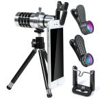 YIEASY 6点セット(12X望遠レンズ 0.63X広角レンズ 15Xマクロレンズ 魚眼レンズ ホルダー 三脚)