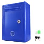 akindou カラフル 鍵付き 投票箱 意見箱 多目的 ボックス 硬質プラスティック製 軽量 凸レンズ小窓付き (青色)
