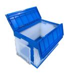 松本産業 業務用 折りたたみコンテナ 50L フタ付き 2面扉付き カードホルダー付き (ブルー / クリア)(DWF50BBC) 窓付き