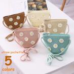 子供用 ポシェット ショルダーバッグ ストローバッグ 肩掛け 斜め掛け キッズ 女の子 麦わら ミニショルダー フラワー 花飾り 女児 可愛い ピンク