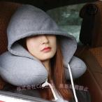 特典限定500off フード付き ネックピロー 睡眠快適 旅行 飛行機 電車移動 U字型枕 首枕 C&J(株) オフィス 車 低反発 フード付き 休憩 携帯便利