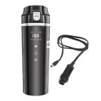 車載用ポット 車載電気ケトル 12V/24V カーポット 車載 カップ 温度表示 304ステンレス鋼 旅行暖房マグカップ 魔法瓶 車用湯沸かし器 車中泊 旅行用 携帯便利 黒