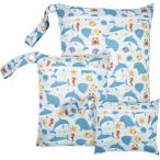 おむつポーチ 3枚セット 防水 ウェットバッグ 水着入れ スナップ付き ベビーカー取付可 コンパクト (マリンアニマル, S/M/L)