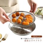 揚げ物 ザル 2点セット バット まる型トレー 油切り 持ち手付き 省スペース セット 唐揚げ 天ぷら 水切り 調理器具 キッチン用品 からあげ 耐食性 揚げかご フラ