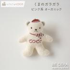 LOLO et COCO オーガニック マスコット ガラガラ くま ホワイト ピンク系 鈴入り 手のひらサイズ ベビー 出産祝い おしゃれ かわいい 日本製 女の子 男の子