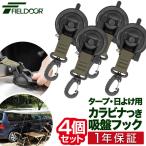 1年保証 吸盤フック 4個セット FIELDOOR カーサイドタープ用 自在フック カラビナタイプ 日よけ タープ すだれ オーニング用 吸盤式 追加フック 送料無料