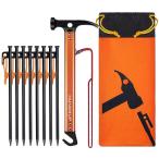 【強化版】 ペグハンマー HUNDRUP キャンプハンマー テントペグ 30cm 8本 反射材入りロープ付き 高炭素鋼 ハンマー 固定用リベット
