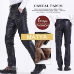 革パンツ フェイクレザーパンツ メンズ 裏起毛 スキニー レザーパンツ ズボン ビジネス 秋冬 防寒 あったか