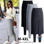 スカート付きレギンス レディース ボトムス スパッツ 裏起毛 サイドスリット ひざ丈 膝丈 ミニ丈 ウエストゴム スカート レギンス 体型カバー 冬コーデ 大人 可