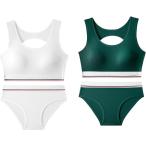 スポーツブラ 上下 セット 2枚 フリーサイズ セクシー 背中 下着 F(ホワイトグリーン, Free Size)