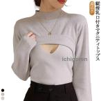 授乳服 ニット セーター マタニティ プチハイネック 授乳用 マタニティウェア トップス 秋冬 カットソー 授乳トップス 部屋着 妊娠 産院 子育て