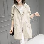 トレンチコート レディース ミディアム丈 ウィンドブレーカー マウンテンパーカー ファスナー フード付き ジャケット 羽織 アウター 春秋 ゆったり