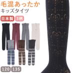 キッズ タイツ 柄 厚手 子供 毛混 冬 日本製 120cm・135cm 子供用 こども 女の子 女児 防寒 暖かい あったかい 透かし編み ハート 黒 グレー (在庫限り)