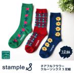 stample スタンプル 728 チアフルフラワークルーソックス 3足組 靴下 ジュニア レディース おしゃれ