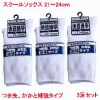 スクールソックス 白 男女 春夏秋冬用 つま先 かかと 補強 タイプ 快適通学 ポリエステル 綿 ポリウレタン ホワイト 21~24cm 3足セット
