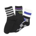 靴下 「大人向けサイズあり」クルー丈BOXロゴ刺繍ソックス3足セット キッズ 子供 男の子