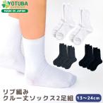 靴下 2足セット リブ編み クルー丈ソックス 白 紺 黒 日本製 子供 スクールソックス オールシーズン 制服 小学生 中学生 受験 結婚式 セレモニー よつば洋品店