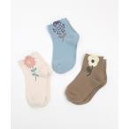 靴下 ポップアップフラワー ショートソックス 3足セット キッズ 子供 男の子 女の子